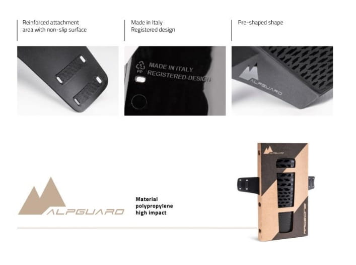 Bardzo lekki błotnik chroniący golenie amortyzatora oraz stery przed wodą i brudem. Alpguard produkowany jest we Włoszech przez producenta koszyków bidonu i bidonów firmę RACEONE.