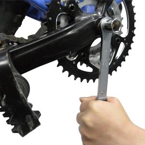 • Wbudowany uchwyt formowany metodą podwójnej gęstości jest szczególnie wyprofilowany, aby zapewnić wygodę, kontrolę i płynność. • Wyposażony w klucz nasadowy 14 mm i klucz imbusowy 8 mm. • Długi uchwyt ułatwia demontaż śrub korbowych bez zdejmowania pedałów.