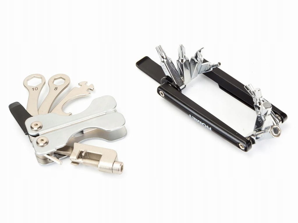 Zestaw kluczy podręcznych przydatnych przy drobnych naprawach roweru. Klucze wykonane z hartowanej stali. 2/2,5/3/4/5/6/8, T25, +,-, łyzki, skuwacz, klucz 8 i 10, klucze do szprych14,15,16G, otwieracz