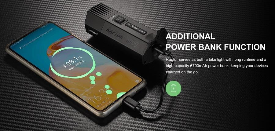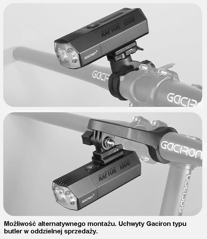 LAMPA PRZÓD GACIRON RAPTOR 1800 LUM USB 6700 MAH