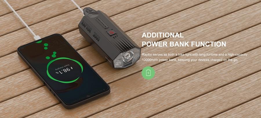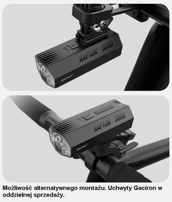 LAMPA PRZÓD GACIRON RAPTOR 3000 LUM USB 10000 MAH