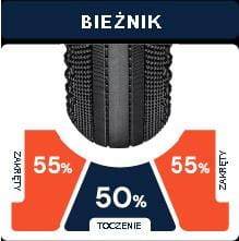 Kimberlite Gravel Kimberlite to nazwa cennego kamienia, który często zawiera w sobie jeszcze szlachetniejszy minerał - diamenty. American Classic Kimberlite jest równie cenny dla kolarzy szutrowych, jak jego imiennik. Jeśli miewasz szybkie wypady zarówno na asfalcie, jak i na żwirze, to zwróć uwagę na oponę Kimberlite. Jest to opona do jazdy w każdych warunkach. Zachowuje się jak opona szosowa na asfalcie, ale świetnie sprawdza się również na twardych, gruntowych nawierzchniach. Półgładki bieżnik zaczyna się od niskooporowego środka, aby zmniejszyć opór toczenia na gładszych nawierzchniach, przechodzi przez stopniowo bardziej agresywne strefy, aby uzyskać maksymalną przyczepność boczną, i kończy się solidnymi wypustkami na krawędziach, aby zapewnić niezawodne pokonywanie zakrętów. Osnowa Tubeless Ready 120 TPI zapewnia najlepszą konstrukcję dla zachowania prędkości i komfortu, a ochrona Stage 5S Armor czyni tę oponę lżejszą, szybszą i bardziej odporną na przecięcia, rozdarcia i ścieranie. Właściwości Szybka i wydajna opona do jazdy po nawierzchniach asfaltowych i mieszanych Dostępna w rozmiarach 700x35C, 700x40C, 700x45C, 700x50C, 650Bx47 Technologia Tubeless Ready Konstrukcja Stage 5S Armor – niższa waga, wysoka szybkość i ochrona Mieszanka Rubberforce G skomponowana specjalnie dla opon typu Gravel Bieżnik centralny szybki jak w rowerze szosowym, boki z pełną kontrolą Specyfikacja Typ: Gravel TPI: 120 TPI Stopka: Zwijana System montażu: Na dętkę, Tubeless Ready oraz Hookless (na obręczach 17-23-27 mm) Wymiar: 700x35C (ETRTO 35-622) Waga: 480 g Max. ciśnienie: 70 PSI (TC/TT) Kolor: Czarny Opony American Classic Tubeless Ready są podobne do nowoczesnych opon samochodowych i motocyklowych. Są zaprojektowane do jazdy bez dętki i mocowane do obręczy za pomocą specjalnych krawędzi na oponie i obręczy. Nowoczesne systemy Tubeless Ready wykorzystują połączenie specjalnej obręczy z taśmą bezdętkową, szczelnej opony TR, zaworu bezdętkowego i uszczelniacza. Nasze opony Tubeless Ready można stosować na tradycyjnych obręczach z oponami dętkowymi. Należy je wówczas jednak stosować wraz z dętką o odpowiednim rozmiarze. Opony American Classic Tubeless Ready są zgodne z obowiązującymi światowymi normami E.T.R.T.O. w zakresie wymiarów. Rubberforce G to nasza rodzina mieszanek bieżnika zaprojektowana do opon American Classic gravel i off-road. Wysoka struktura i duża powierzchnia właściwa (SSA) sadzy węglowej zapewniają doskonałą odporność na ścieranie, wysoką wytrzymałość na rozciąganie oraz dobrą odporność na rozdarcie i przecięcie podczas przygód off-roadowych. Końcowe mieszanki projektujemy tak aby były specyficzne dla zamierzonego typu jazdy konkretnego modelu opony. Stage 5S Armor to technologia konstrukcji opon szutrowych marki American Classic, łącząca w sobie materiał osnowy 120 TPI, mieszankę bieżnika Rubberforce G, powłokę gotową na zastosowanie bezdętkowe oraz materiał Nylon105 na całej powierzchni opony. Dzięki temu opona jest lżejsza, szybsza i bardziej odporna na przecięcia, rozdarcia i ścieranie niż oryginalny model Stage 5S Flat Protection.
