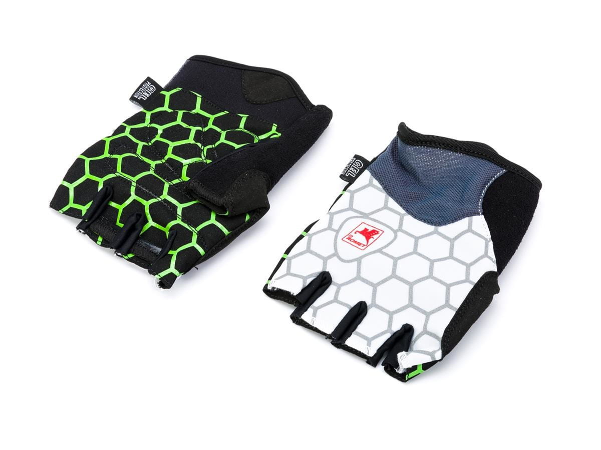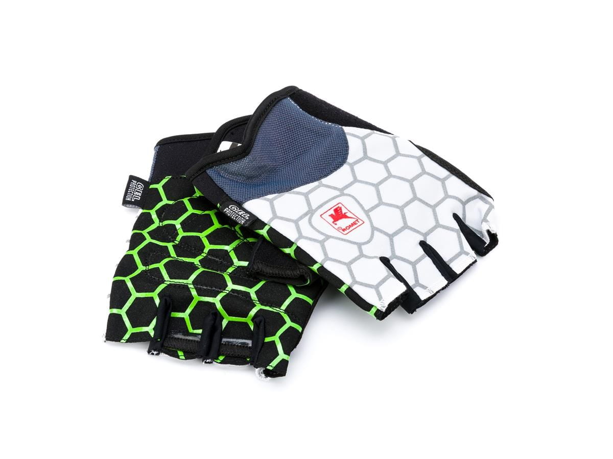 Rękawiczki z wkładką żelową oraz frotką i gumkami do ściągania, dodatkowo odblaskowy wzór dla poprawy bezpieczeństwa.