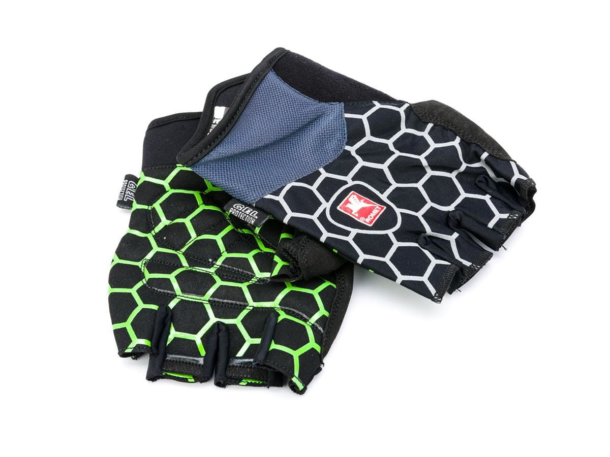 Rękawiczki z wkładką żelową oraz frotką i gumkami do ściągania, dodatkowo odblaskowy wzór dla poprawy bezpieczeństwa.