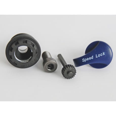 SRFKE028-46 - Korek blokady NEX HLO kpl. ( korek wkręcany w goleń + śrubka + zębatka z imbusem + korek blokady niebieski )